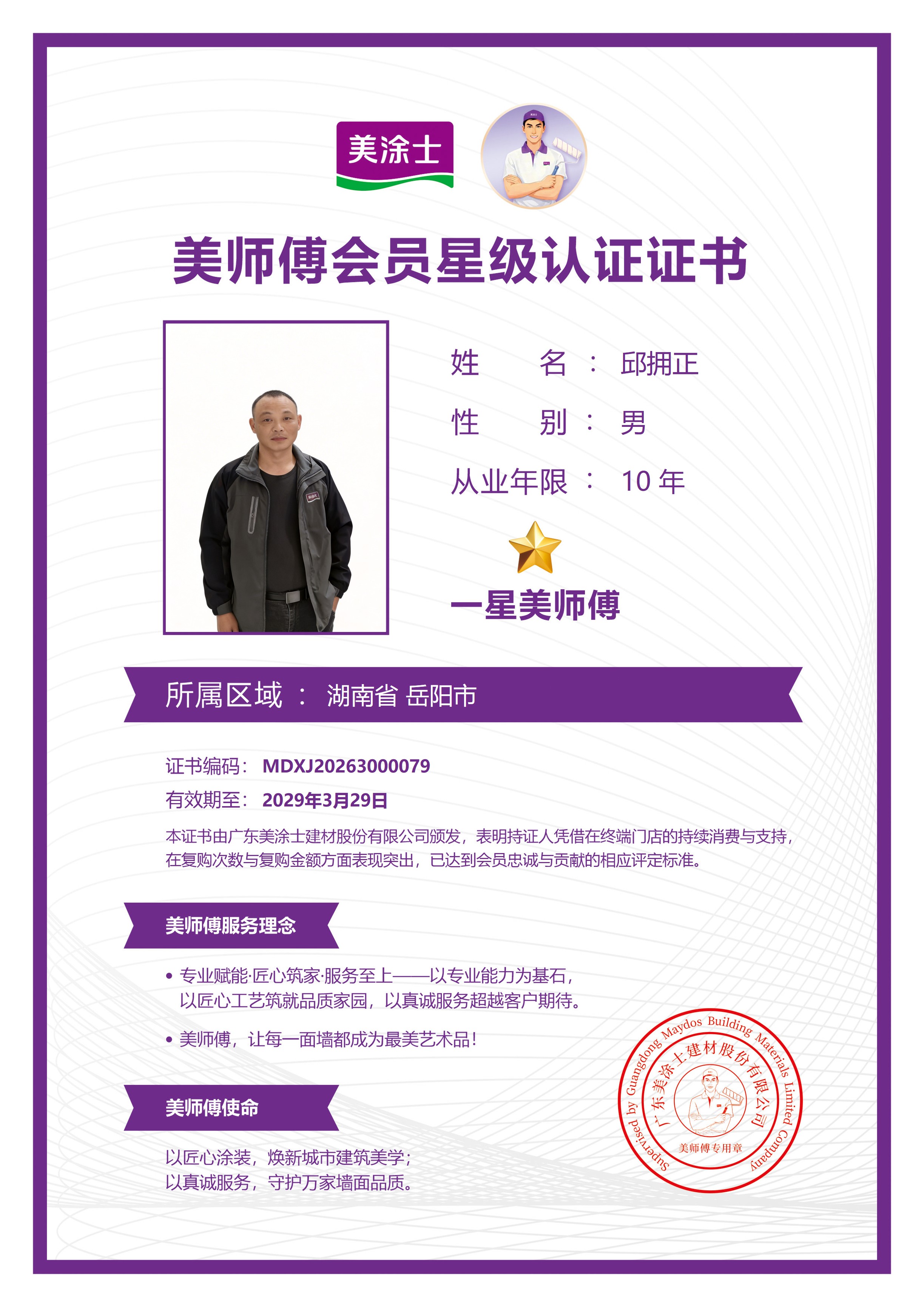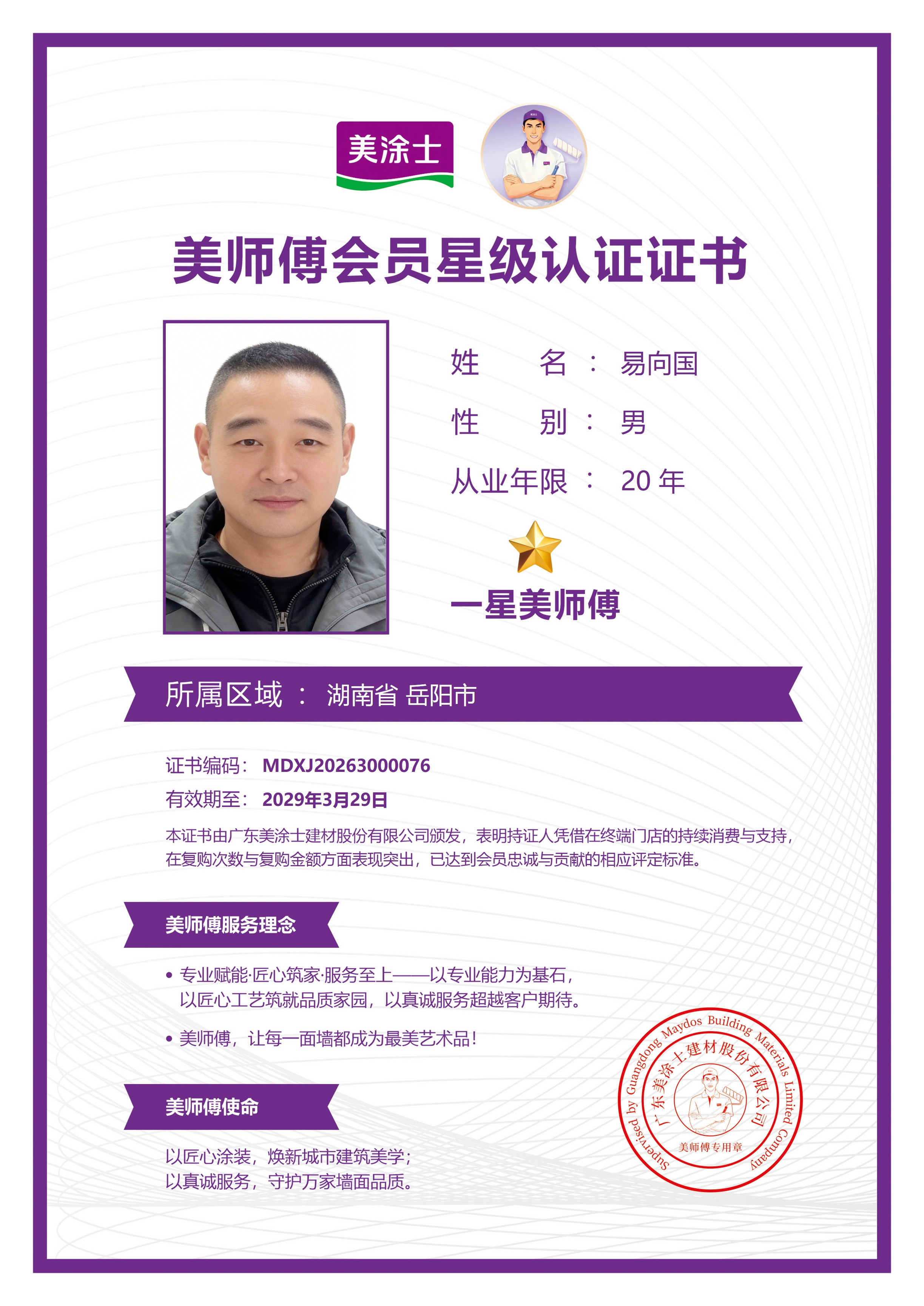 美涂士美师傅认证