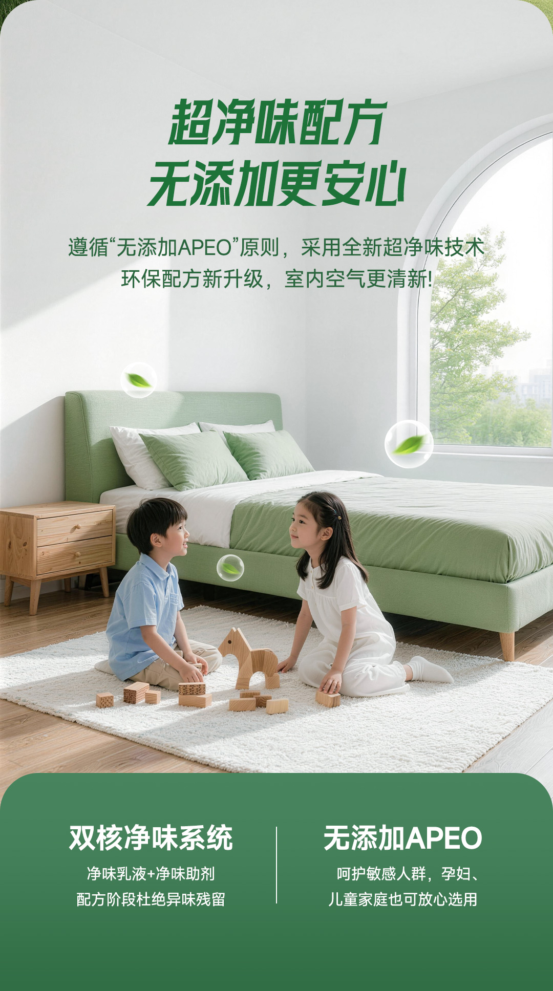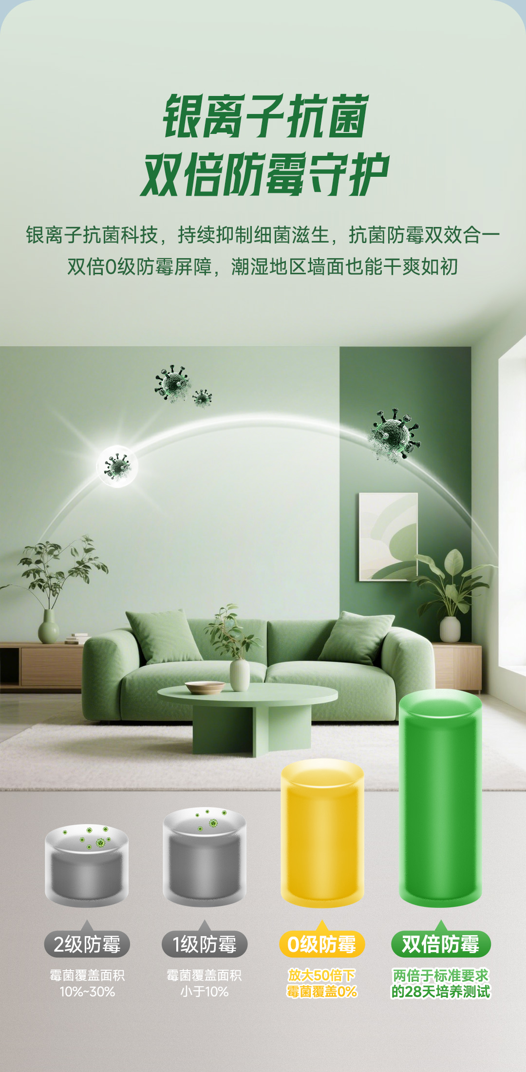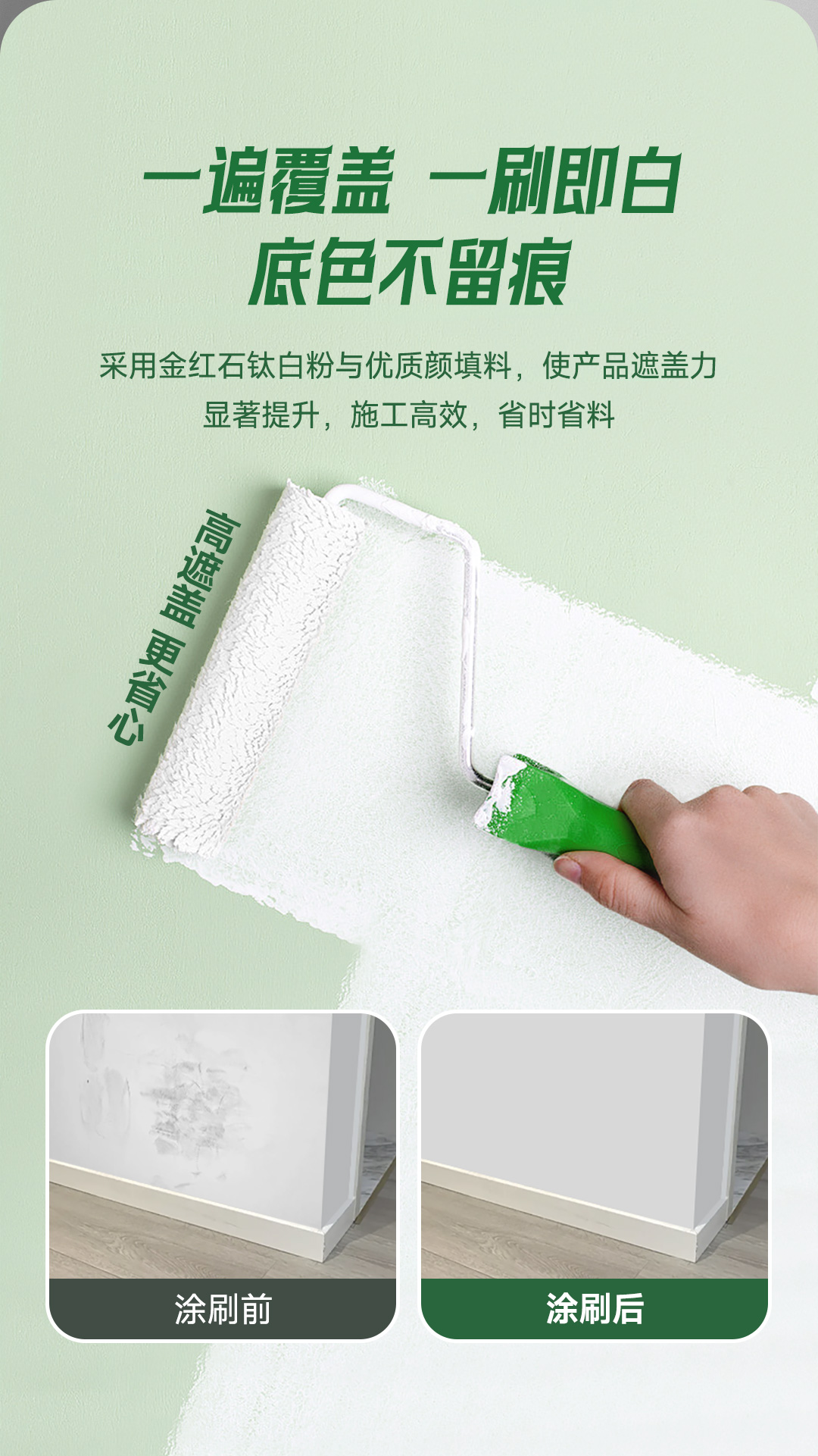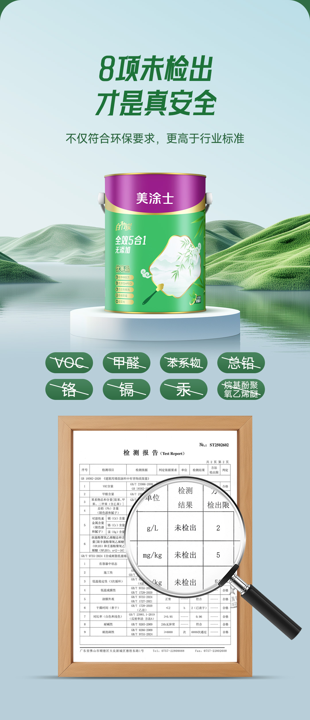 白竹炭全效 5 合 1 健康墙面漆特别添加白竹炭因子,使用净味原材料及净味技术,双核净味,气味清新;在生产过程中不添加 APEO,环保安全;产品配方皓白,遮盖力好,易于施工;同时漆膜细腻,手感爽滑,是打造健康环保,持久靓丽墙面的理想选择!