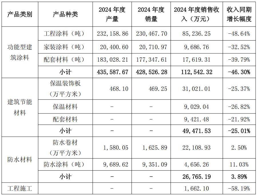 根据财报,亚士创能2024年实现营业收入20.52亿元,同比下降34.01%%,其中:功能型建筑涂料实现营收11.25亿元(约合1.565亿美元),同比下降46.30%。